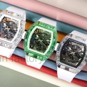 RM Factory Richard Mille RM 055 43mm Transparent Crystal White Rubber Strap Skeletonized Black Dial