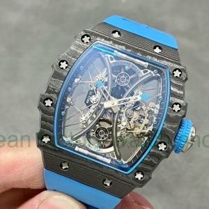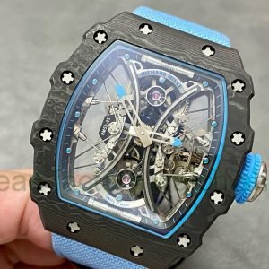 RM Factory Richard Mille RM 53-01 43mm Carbon Fiber Blue Rubber Strap Skeletonized Black Dial