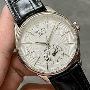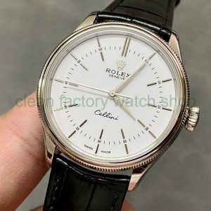 EW Factory Rolex Cellini 39mm White Gold Leather Strap White Dial