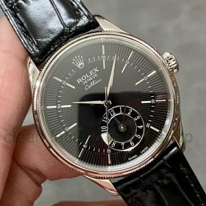 EW Factory Rolex Cellini Dual Time 50529-0007 39mm White Gold Leather Strap Black Dial