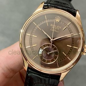 EW Factory Rolex Cellini Dual Time 50525 39mm Rose gold Leather Strap Brown Dial