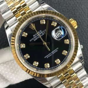 EW Factory Rolex Datejust 36 126233-0021 36mm Half Yellow Gold Black Diamond Dial