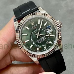 Noob Factory Rolex Sky-Dweller 336239 42mm White Gold Rubber Strap Green Dial
