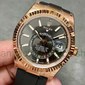 Noob Factory Rolex Sky-Dweller 336235-0004 42mm Rose Gold Rubber Strap Grey Dial