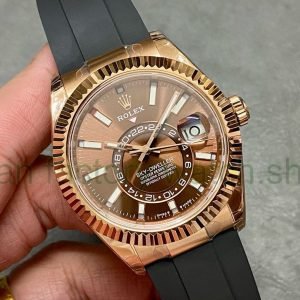 Noob Factory Rolex Sky-Dweller 336235-0002 42mm Rose Gold Rubber Strap Brown Dial