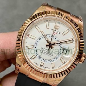 Noob Factory Rolex Sky-Dweller 336235-0003 42mm Rose Gold Rubber Strap White Dial