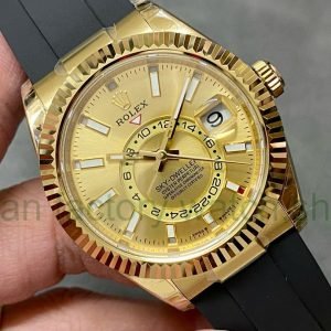 Noob Factory Rolex Sky-Dweller 336238-0001 42mm Yellow Gold Rubber Strap Yellow Gold Dial