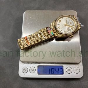 QF Factory ‘Counterweight 183g’ Rolex Day-Date 40 228238-0002 40mm Full Yellow Gold Roman Number Silver Dial