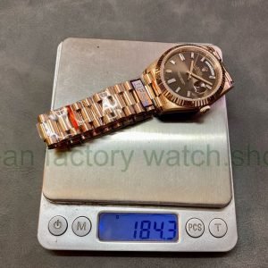 QF Factory ‘Counterweight 183g’ Rolex Day-Date 40 228235-0003 40mm Full Rose Gold Baguette Diamond Brown Dial