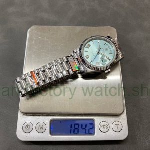 QF Factory ‘Counterweight 183g’ Rolex Day-Date 40 228236-0012 40mm Full Platinum Roman Numerals Blue Dial