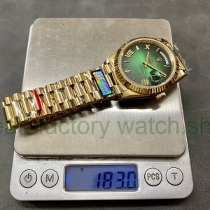 QF Factory ‘Counterweight 183g’ Rolex Day-Date 40 228238-0069 40mm Full Yellow Gold Roman Number Green Dial