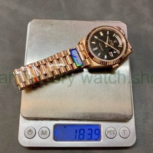 QF Factory ‘Counterweight 183g’ Rolex Day-Date 40 228235-0045 40mm Full Rose Gold Baguette Diamond Black Dial