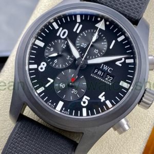 TPS Factory IWC Pilot Chronograph IW389101 44.5mm Ceramic Rubber Strap Arabic Numerals Black Dial