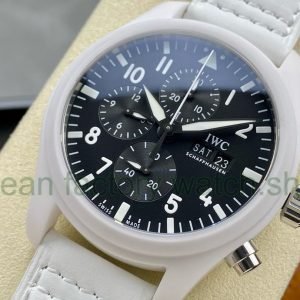 TPS Factory IWC Pilot Chronograph Top Gun IW389105 44.5mm Ceramic Leather Strap Arabic Numerals Black Dial