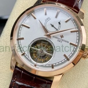 TUR Factory Vacheron Constantin Tourbillon Traditionnelle 89000/000R-9655 42mm Rose Gold Leather Strap White Dial