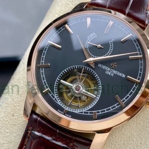 TUR Factory Vacheron Constantin Tourbillon Traditionnelle 89000/000R-B407 42mm Rose Gold Leather Strap Black Dial