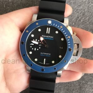 VS Factory Panerai Luminor Submersible GMT PAM 00719 47mm Titanium Black Rubber Strap Blue Dial