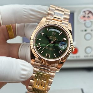 PPM Factory Counterweight Rolex Day-Date 228235-0025 40mm Full Rose Gold Roman Number Olive Green Dial