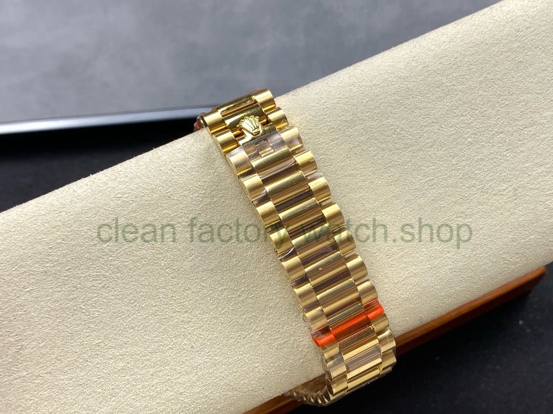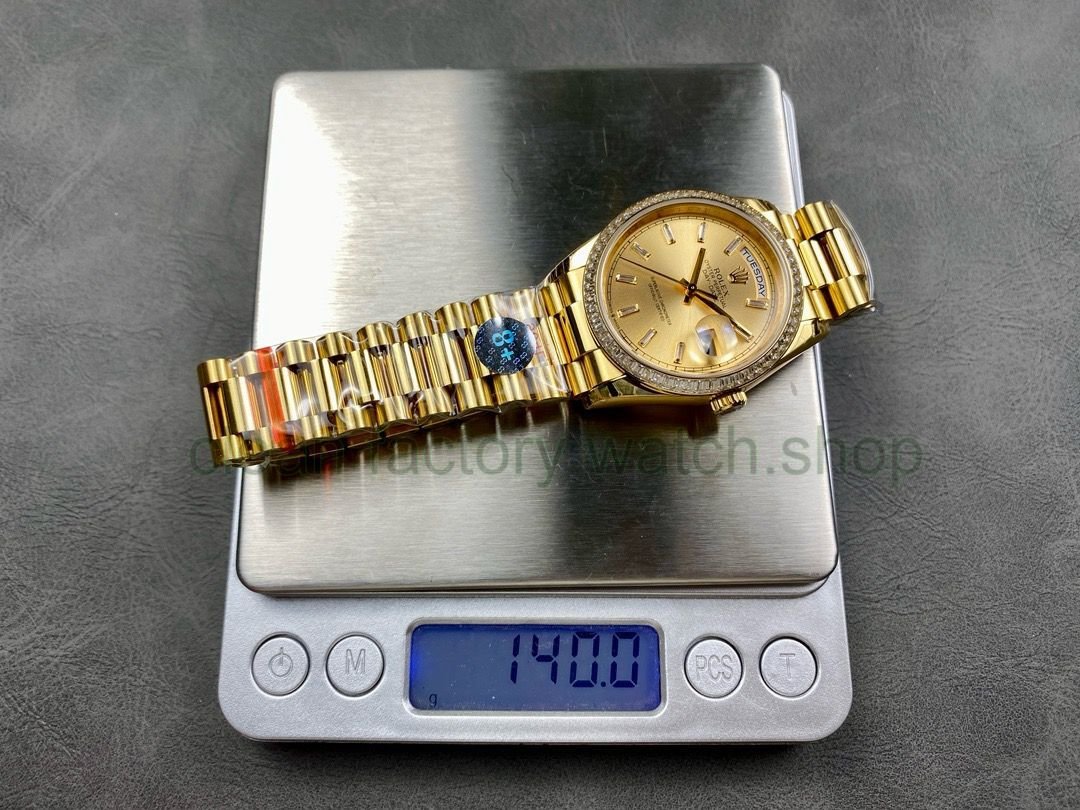 8+ Factory exclusively customizes the matched version of the Rolex day-date 36mm belt weighted version, specially equipped with 2834 fully automatic mechanical movement 106g and the new customized 3255 fully automatic mechanical movement 90g. The photo is the 2834 version.