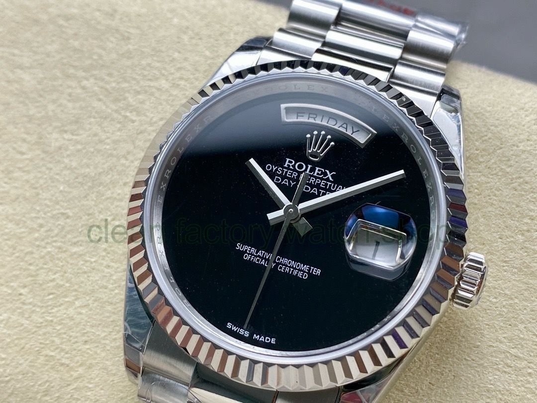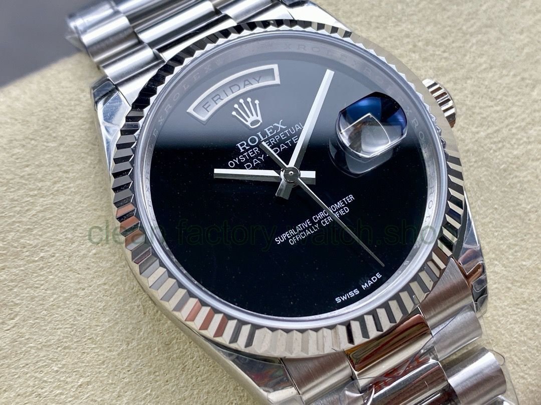 8+ Factory exclusively customizes the matched version of the Rolex day-date 36mm belt weighted version, specially equipped with 2834 fully automatic mechanical movement 106g and the new customized 3255 fully automatic mechanical movement 90g. The photo is the 2834 version.