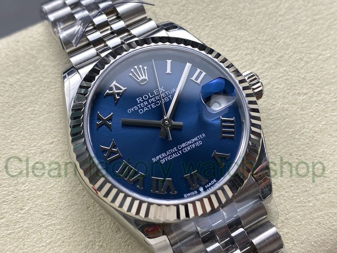 8+ Factory Rolex Counterweight Datejust 278274-0034 31mm Full 904L Roman Numerals Blue Dial Jubilee