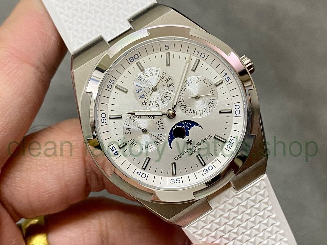 It is equipped with Cal.1120QP movement, which is consistent with the genuine product, and is equipped with Overseas’ characteristic oscillating weight. It has calendar, day of the week, month, moon phase, and other functions. All functions can be used normally. The dial has a diameter of 41.5 mm, sapphire mirrors on the front and rear, a sunburst satin brushed dial with a minute scale inner shadow circle and super luminous light. Just like the original product, you can easily change the strap by flipping the small lever between the strap and the watch lug, which can be literally corrected and adjusted to create a true 1:1 replica. The 316L stainless steel case, screw-in crown, and round and slightly oval shape are the most distinctive representatives of the world.