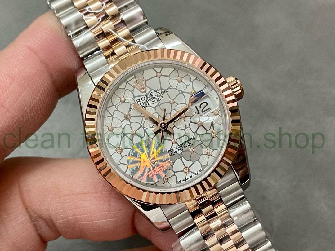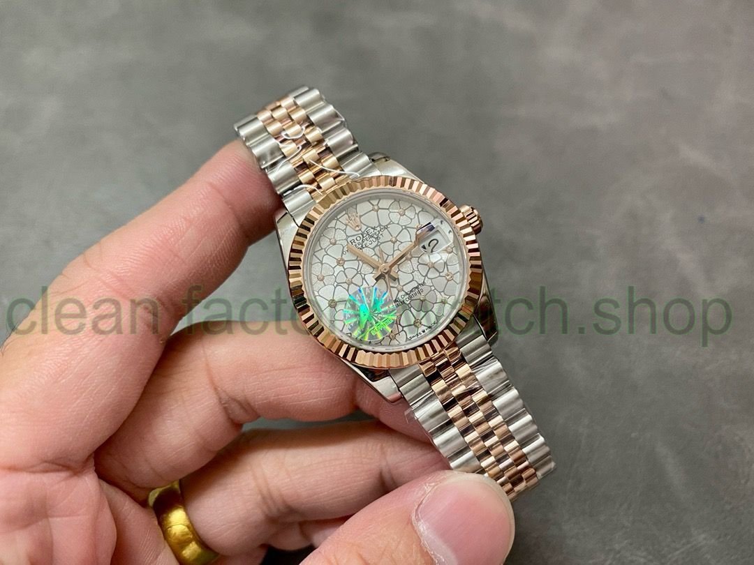 A+ Factory Rolex Datejust 278271-0032 31mm Half Rose Gold Silver Floral-Motif, Diamond-Set Dial Jubilee