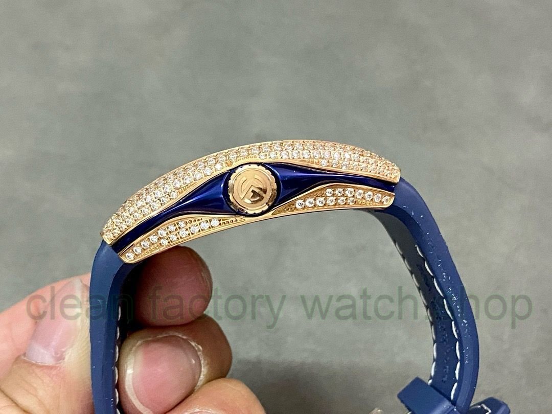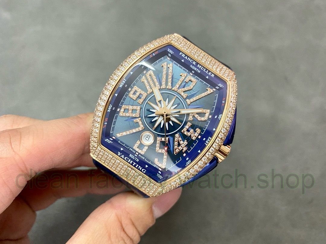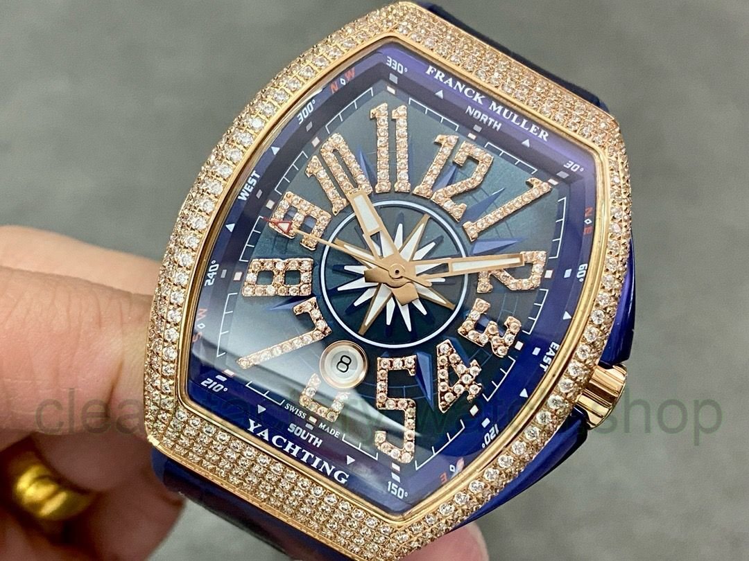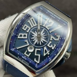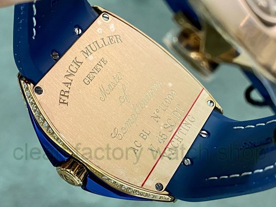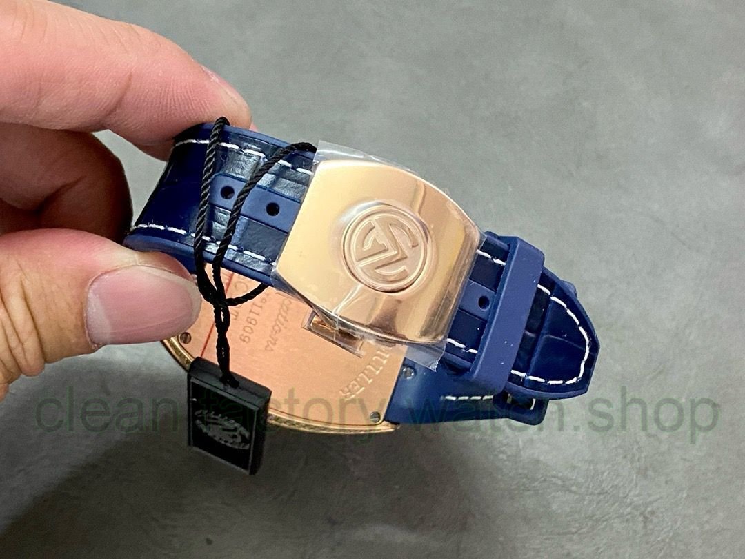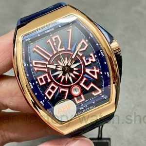 ABF’s highest quality Franck Muller FM Vanguard Yachting V45 yacht series 44×54 mm1. The case is 100% original molded, especially the blue side grooves on the inside of the middle of the sandwich structure case and the blue lugs protruding from the head. The production process of the watch case was more difficult, and it took more than 10 months and many first edition proofreadings to finally successfully develop and produce it. It was completely made of 316 stainless steel instead of low-cost plastic molds in the market. 2. This version of V45 Blue Yacht literally has real franc characters and Dingdu. It adopts the original 1:1 height digital concave edge and is baked with real dice. The cost is high, the production is complex and the yield rate is low. The lower layer of the letter has a magnifying glass gasket layer. The calendar window also uses a sapphire magnifying glass, which always maintains the same requirements as the original and can be used universally. Keep improving. 3. Use super large arc. The ultra-high-definition light-transmitting sapphire crystal glass is made of a whole piece of 40*50mm sapphire raw material with a thickness of more than 15mm. It is 100% carefully ground according to the curvature of the case. The scrap rate is high and the yield is extremely low. 4. The diamond-set buckle adopts the original mold and original V45’s star-studded diamond-set pin buckle makes it easier to wear and maximizes the restoration of the original version. The light-shell version uses a folding snap buckle that is consistent with the original version. 5. The bent hands fit the lettering and match the high-frequency amplitude 28800 ETA2824 movement. Accurate travel time, stable quality, curved case design that fits tightly on the wrist 6. The upgraded steel-headed calendar high-grade rubber strap is more soft and comfortable. The only version on the market that can be used for the original watch strap V45 Blue Yacht welcomes your appreciation.
