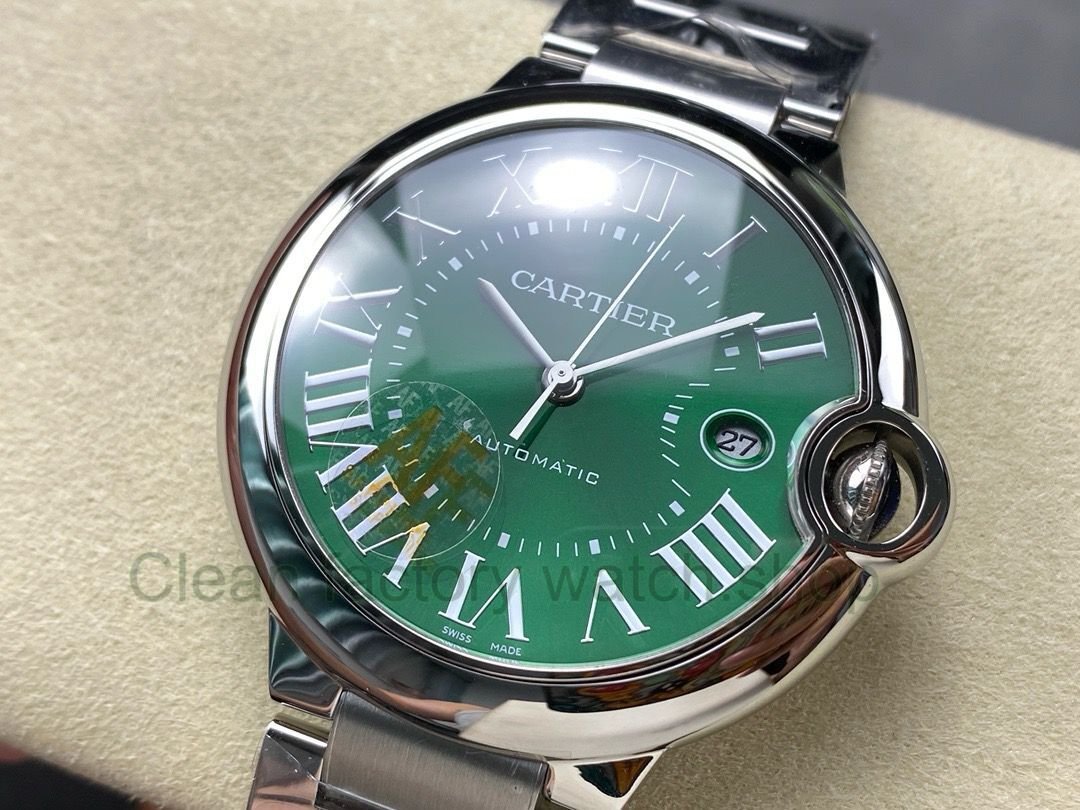 AF Factory Cartier Ballon Bleu 42mm Full Steel Roman Numerals Green Dial