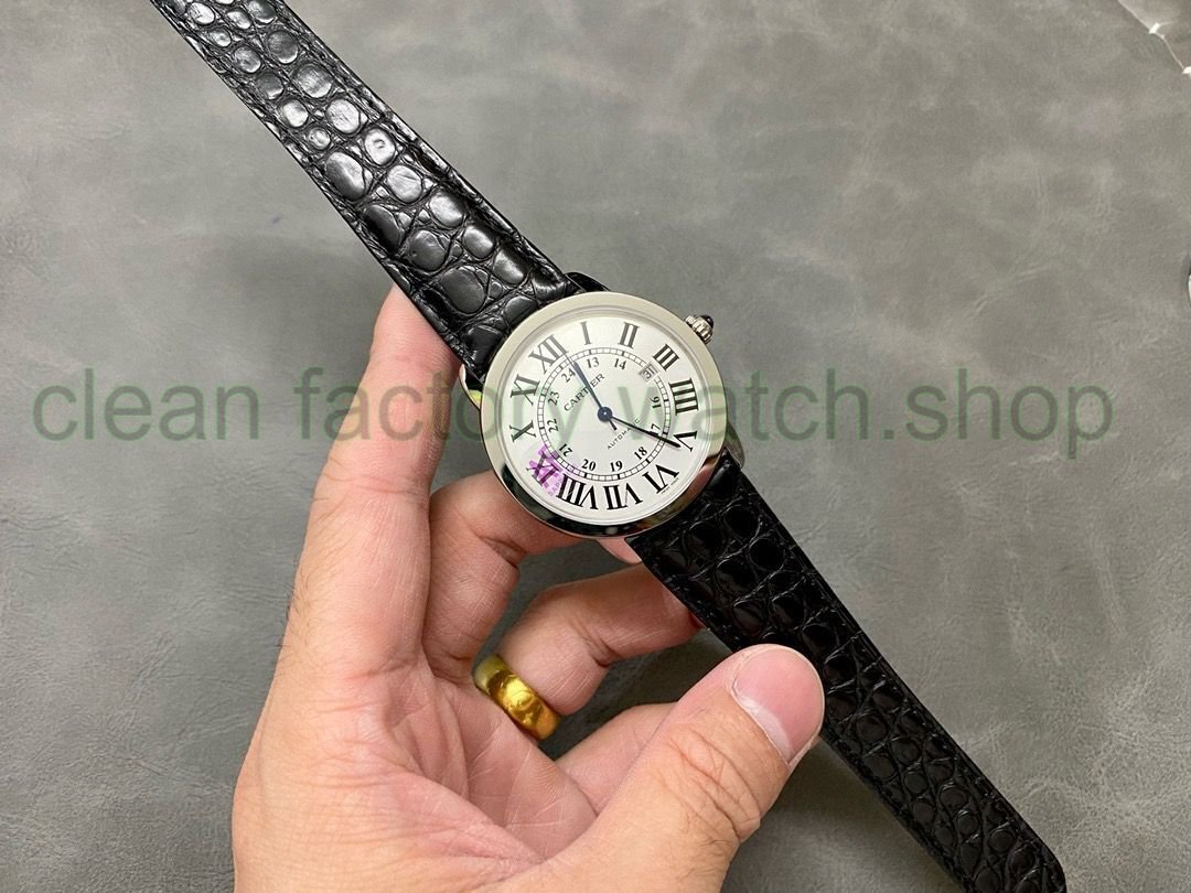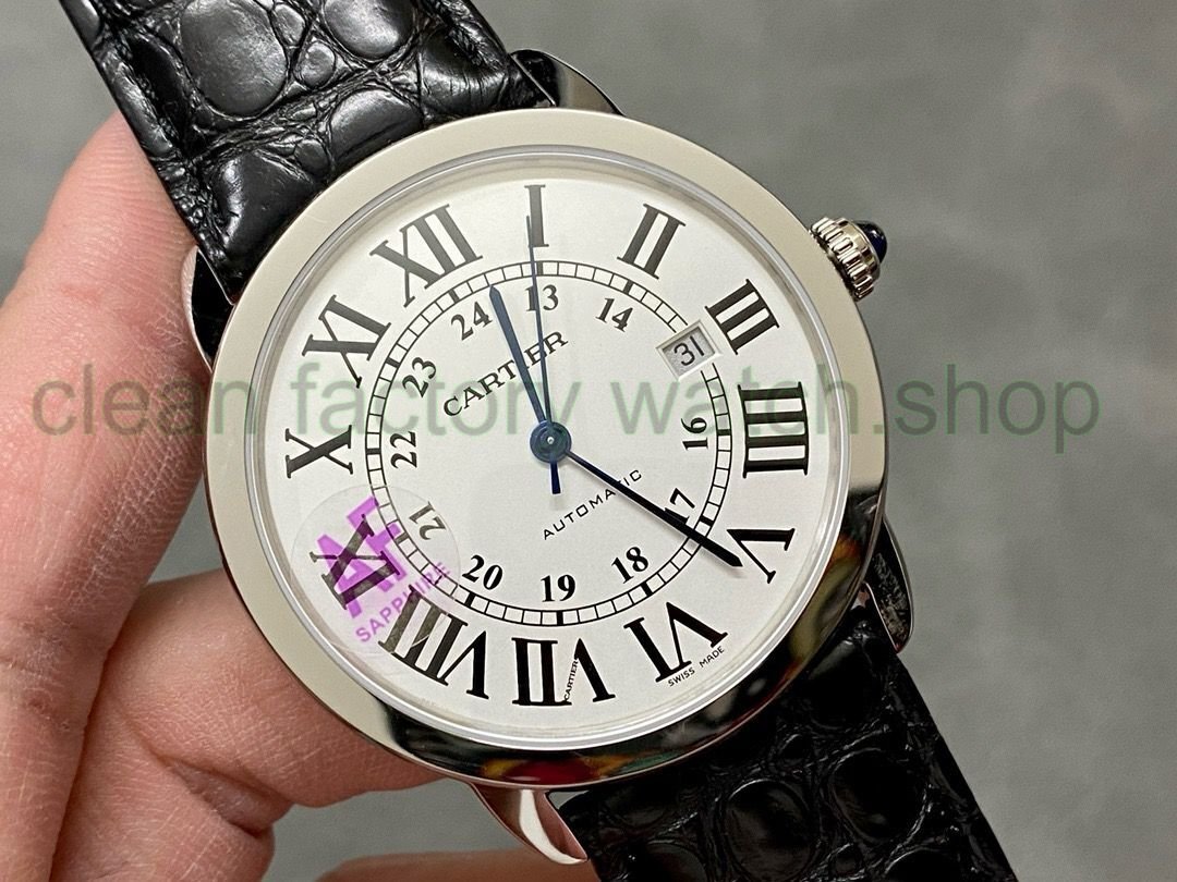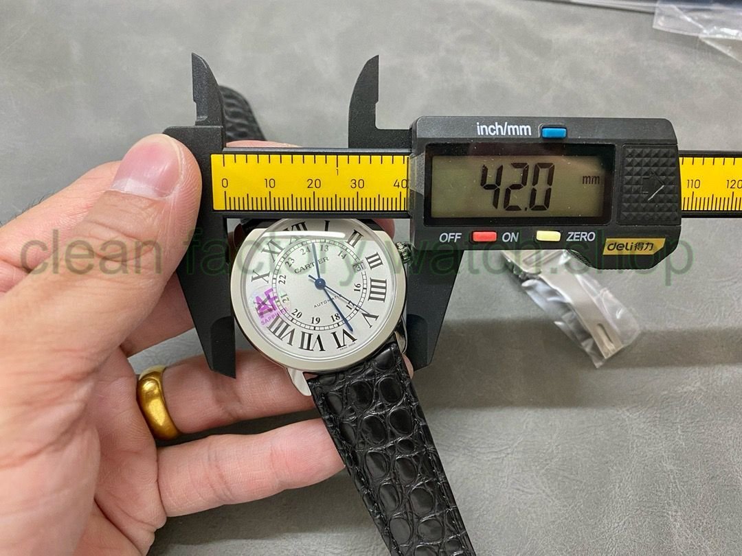 AF Factory Cartier Ronde Solo de Cartier W6701011 42mm Steel Leather Strap Roman Numerals Silver Dial