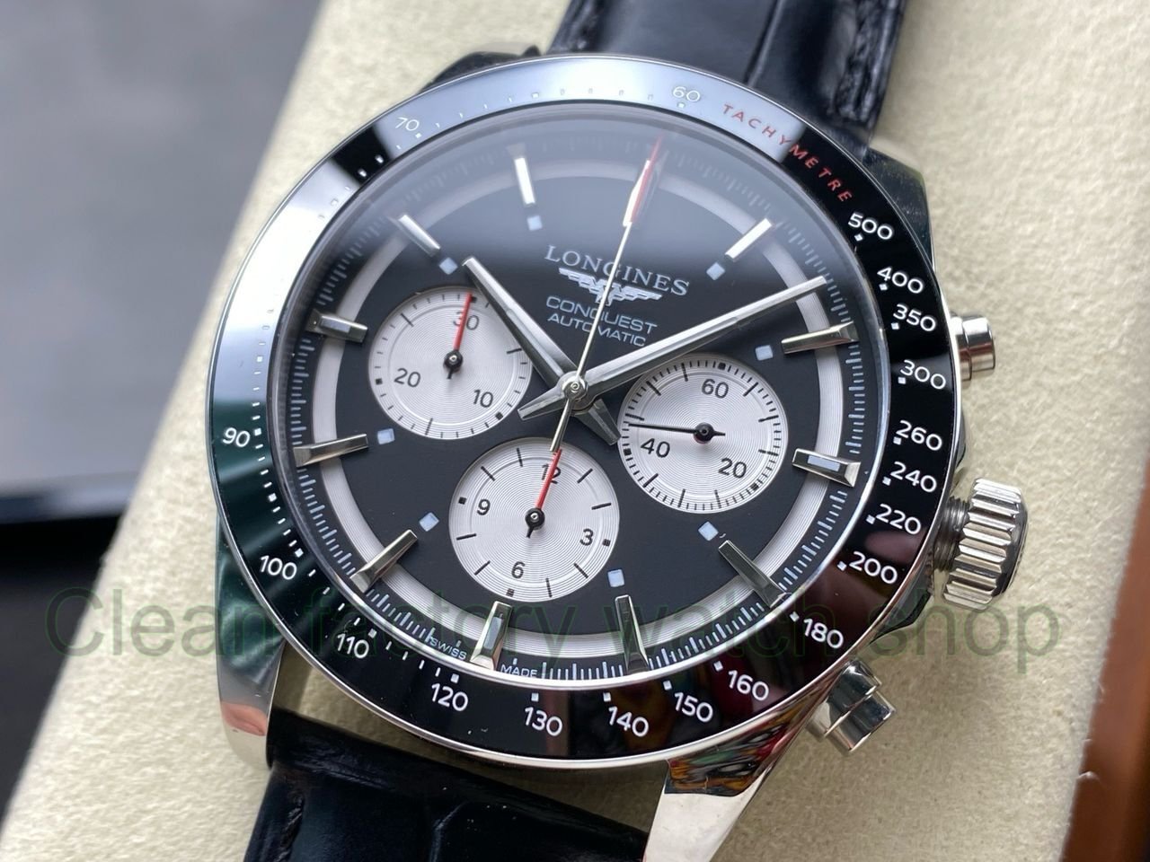 AF Factory Longines Conquest Chronograph L3.835.4.52.6 42mm Steel Leather Strap White Eyes Black Dial