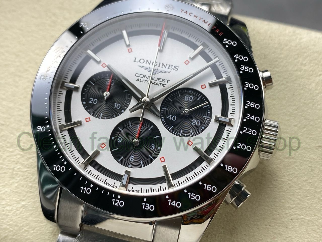 AF Factory Longines Conquest Chronograph L3.835.4.72.6 42mm Full Steel Strap Black Eyes White Dial