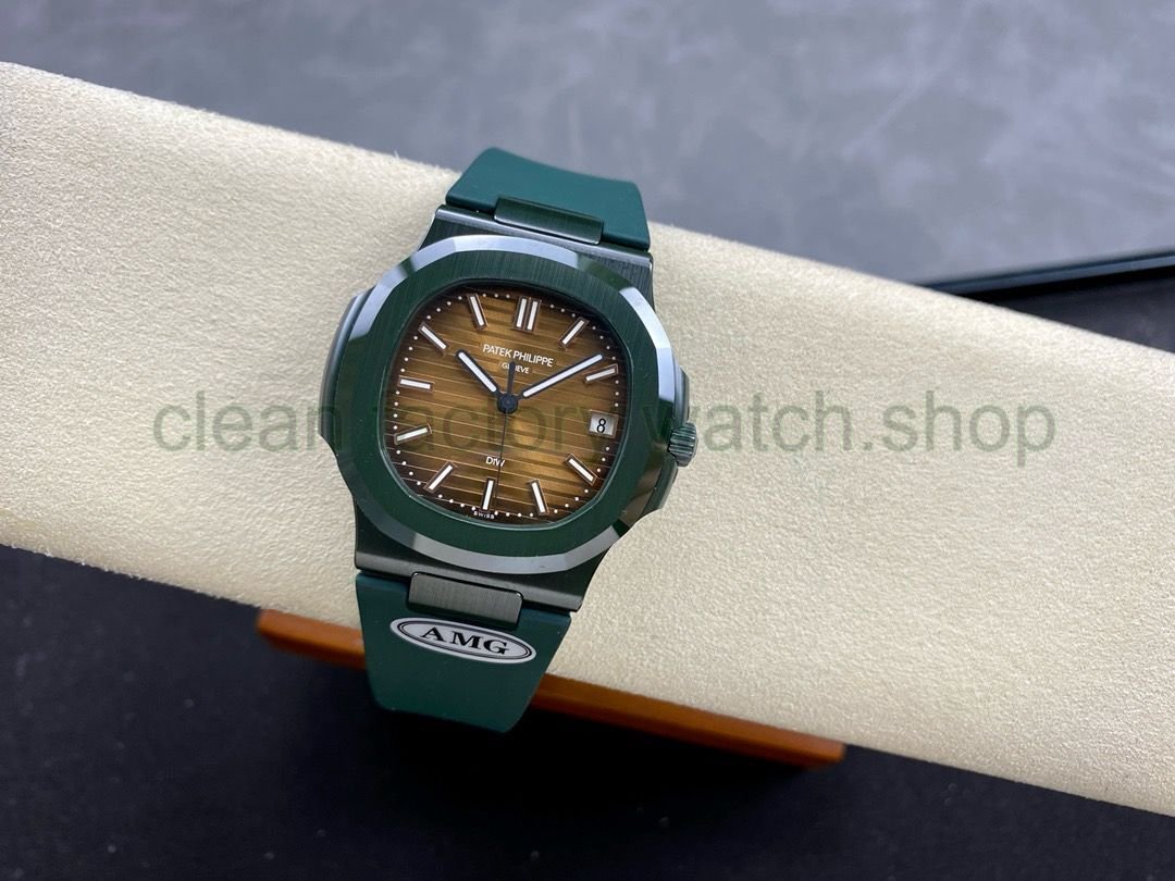 AMG Factory Customer Made Patek Philippe Nautilus PP5711 40mm Ceramics Dark Green Rubber Strap Brown Dial