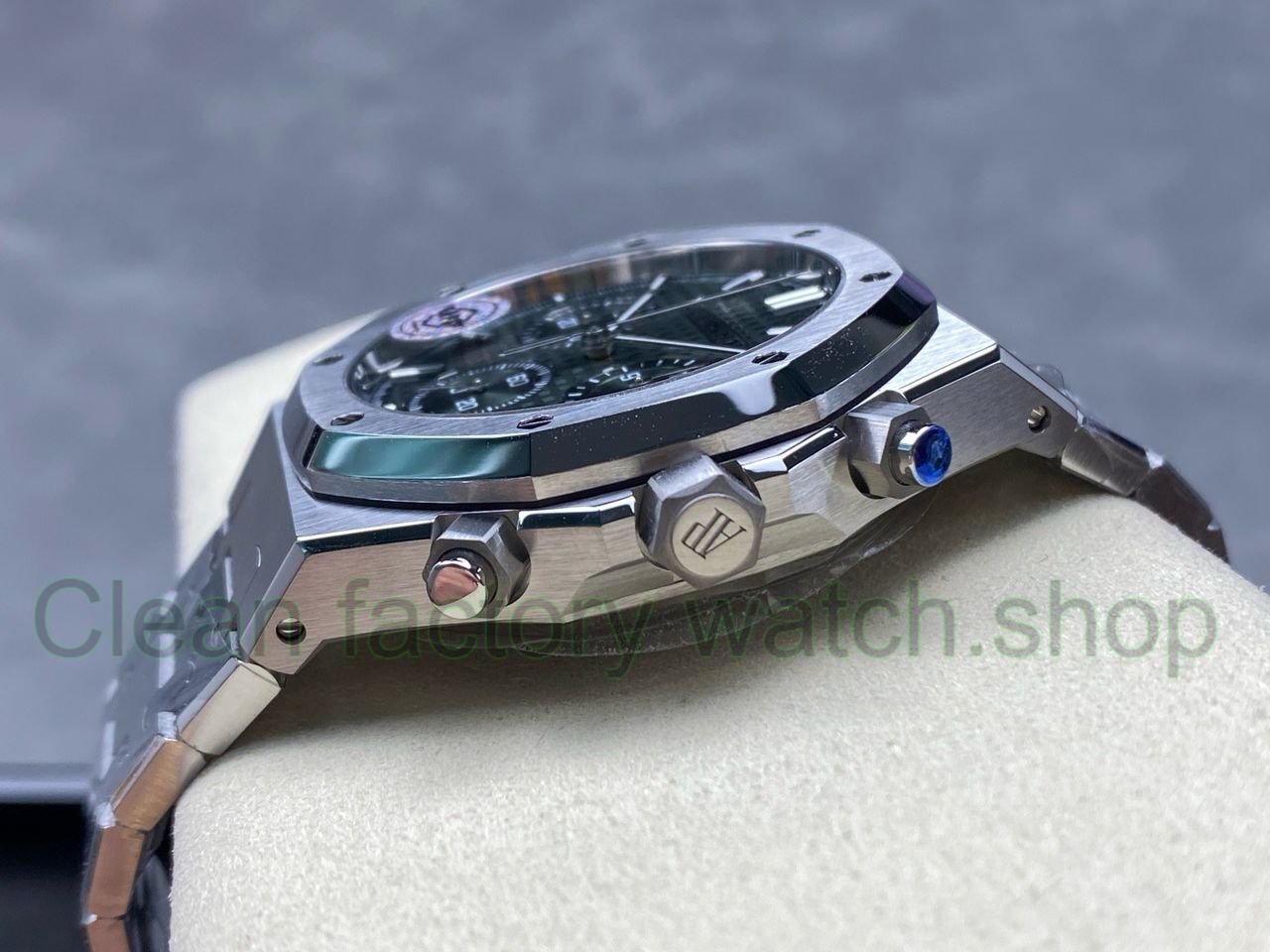 Equipped with the integrated 4401 movement, a 41mm case, and a 12.4mm thickness, the APS Factory Audemars Piguet 26240 chronograph stands as the highest-standard replica on the market. With its precise chronograph function, timeless design, and exceptional craftsmanship, this watch rightfully claims its place as a pinnacle of luxury watchmaking. Choosing the APS Factory Audemars Piguet 26240 chronograph is choosing unparalleled precision and sophistication that transcend time.