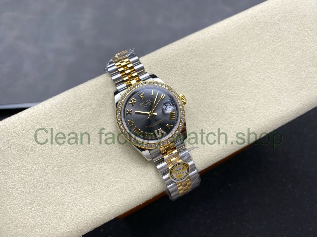 ARF Factory Counterweight Rolex Datejust 278383RBR-0018 31mm Yellow Gold Diamond Roman VI Grey Dial Jubilee