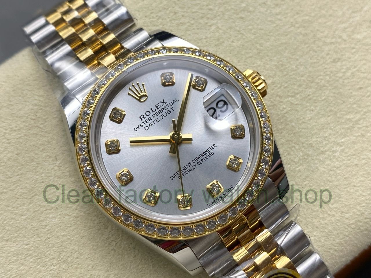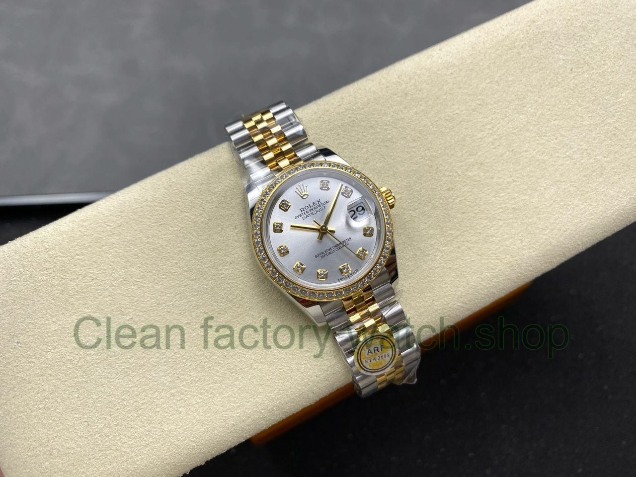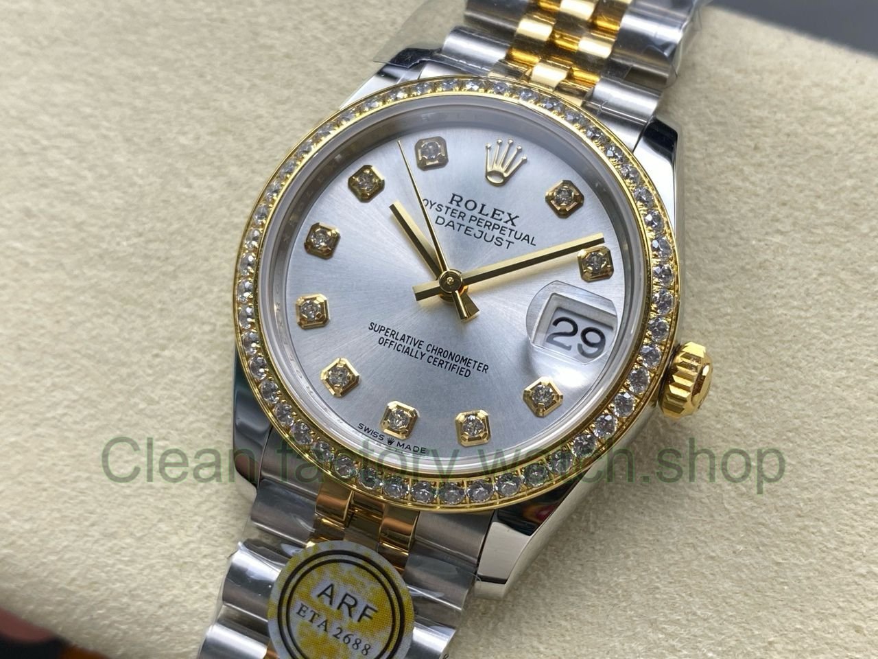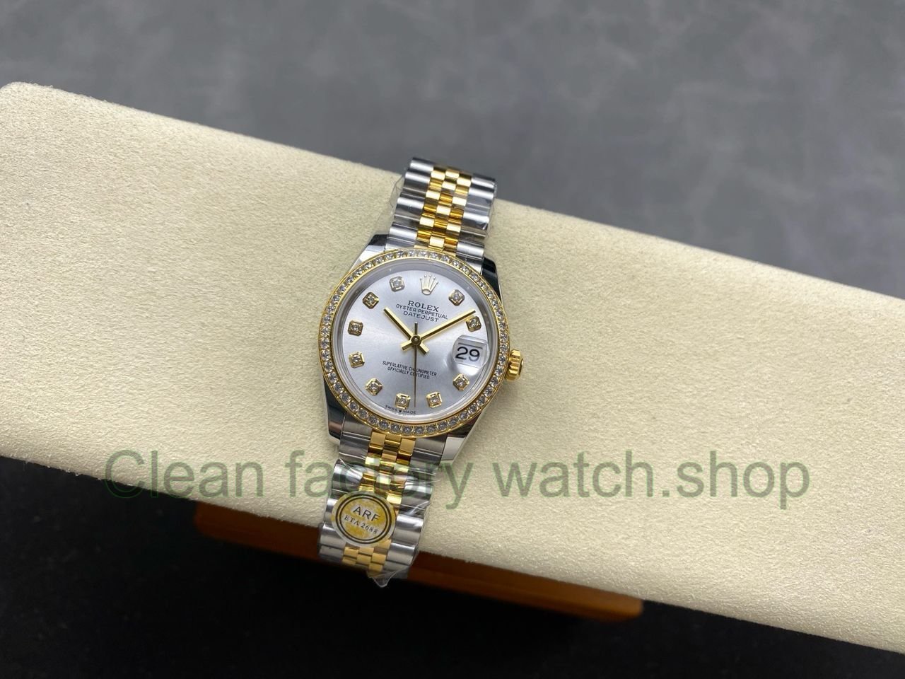 ARF Factory Counterweight Rolex Datejust 278383RBR-0020 31mm Yellow Gold Diamond Bezel Silver Dial Jubilee