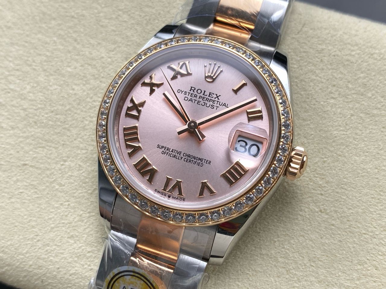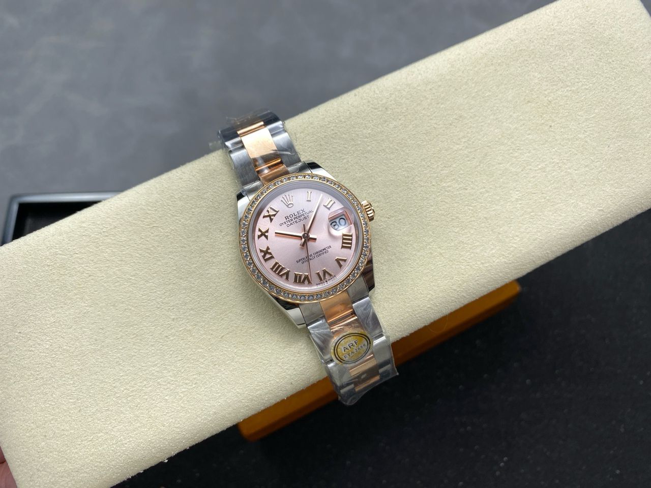ARF Factory Counterweight Rolex Datejust Oyster 278381RBR-0001 31mm Rose Gold Diamond Bezel Roman Numerals Rose Dial