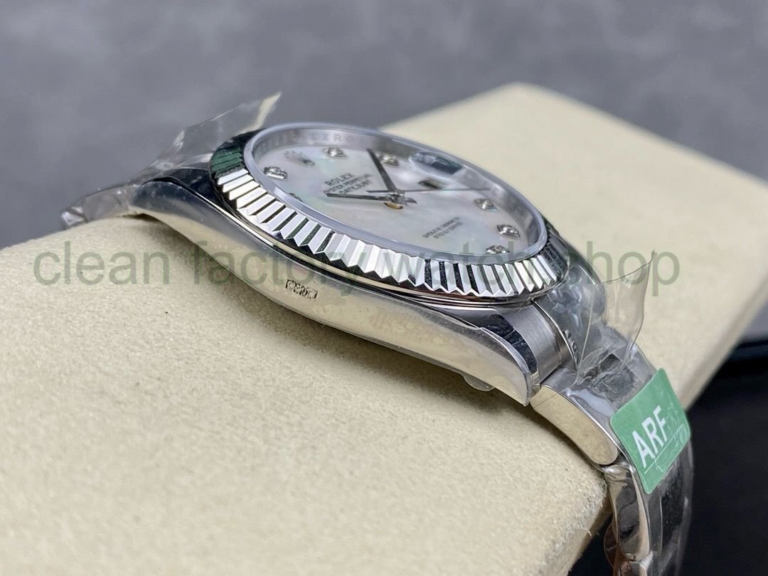 ARF Rolex Datejust 41mm, dog tooth bezel (classic model) and aperture (low-profile model) are all produced. The watch core is equipped with the 3235 integrated movement. The mirror is made of high-definition sapphire with a 2.5x mineral mirror and three-dimensional hands. The oil printing on the panel is three-dimensional and clear, the arc and surface nails are chamfered and polished, and the ice sapphire blue super luminous color is used. The shell and steel chain are made of 904L stainless steel (AR factory). Steel chains are divided into two types: five-strand chain and plate chain! It took more than 300 days, and all the accessories were made by famous precision factories, after repeated mold changes and modifications. Be consistent with the original product. Accessories are interchangeable with genuine products. Personally, I prefer the aperture log, which is fresher and simpler, and more suitable for daily and business styles! Welcome to evaluate and compare. If there are any deficiencies, please give us your valuable suggestions. ARF will make progress together with you!