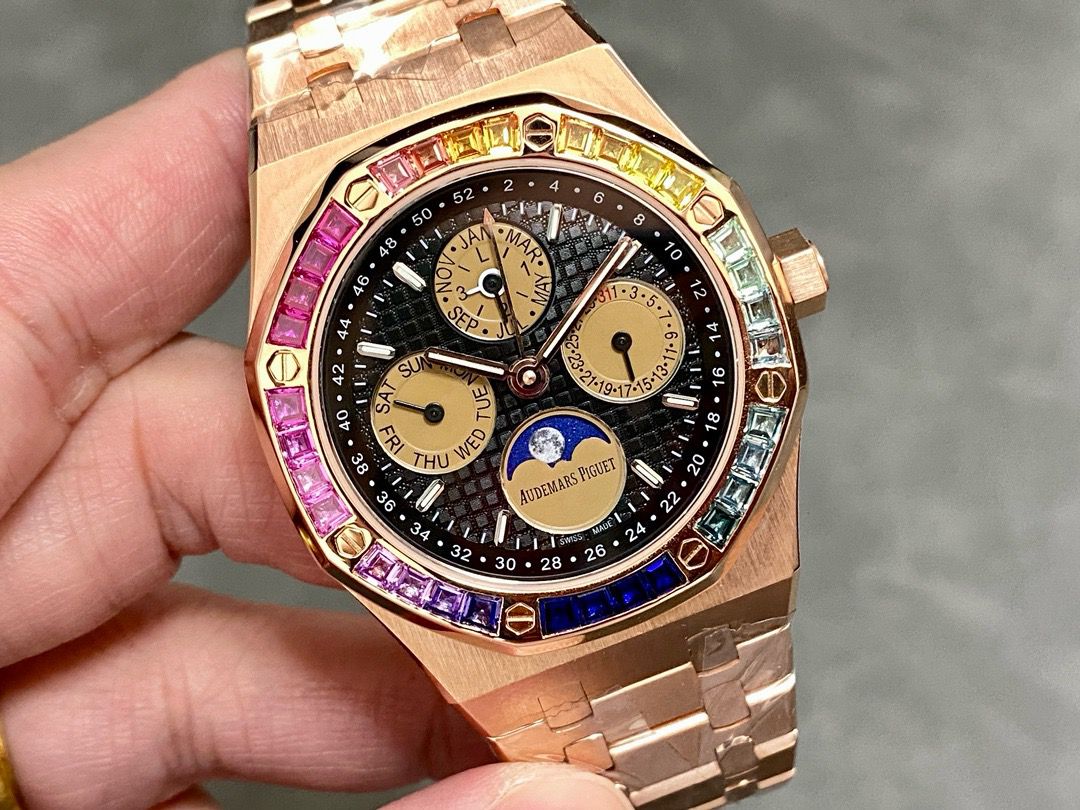 Custom Luxury Audemars Piguet 26574 Rainbow Bezel – 18K Gold-Plated Edition