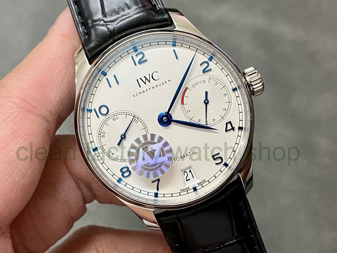 AZ IWC Portuguese series seven-day chain watch integrates hour and minute hands, date, small seconds and dynamic display. As the saying goes, the function is excellent and the flower blooms late. I invite friends from all walks of life to appreciate it and support it. [Case] ​​The size of the watch is 42.3mmX14.1m, with a moderate thickness. The case is polished with top-level CNC technology, and the lines are clear and smooth. The effect maintains AZ’s usual high level. The front and rear sapphire mirrors, and the transparency of the front glass coating reaches the extreme. [Movement] The original 52010 movement was disassembled. Through a lot of attempts and data analysis, the structure was 80% consistent with the 52010 movement. The debugging method It’s 100% synchronized with the feel. AZ spares no expense to restore the original style and bring you an invincible experience that is closest to the original product. [Strap buckle] Italian calfskin with IWC original grade folding buckle