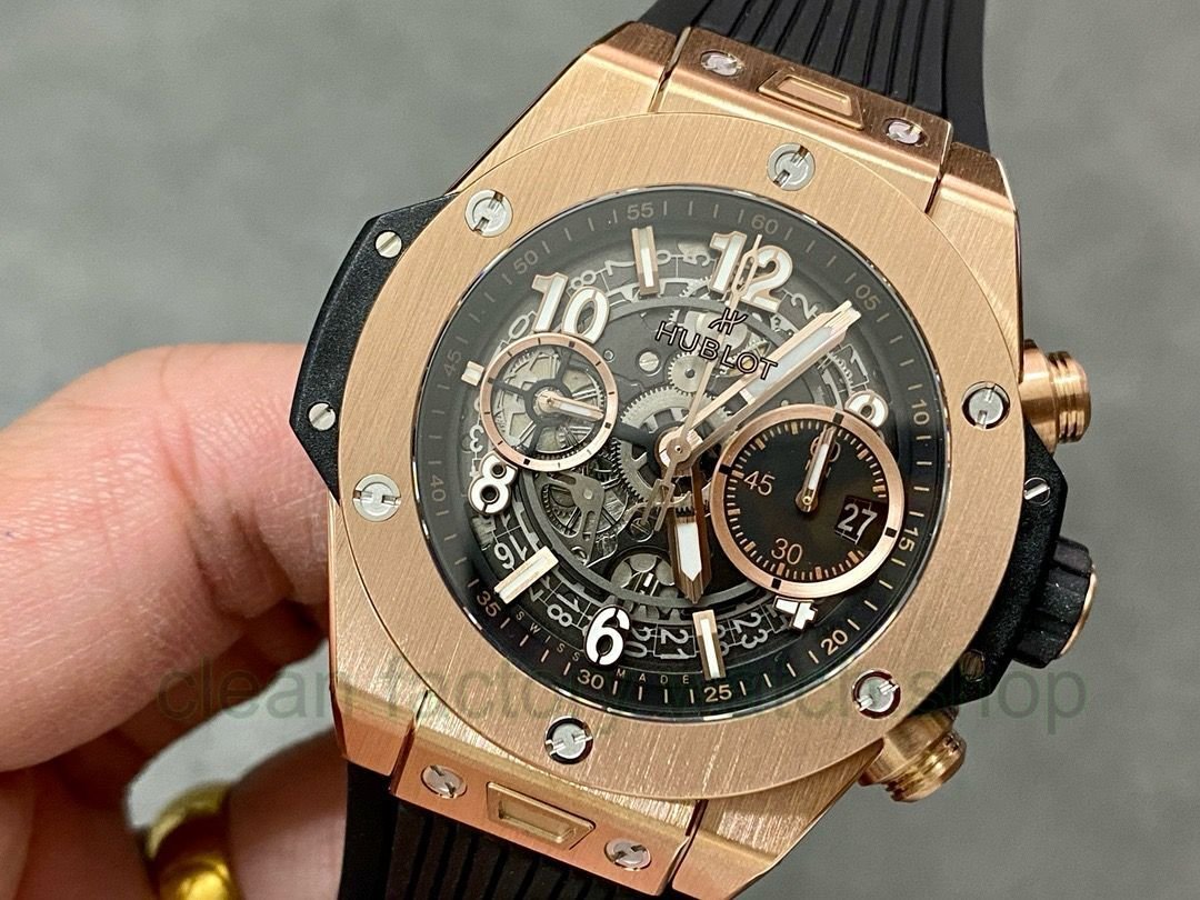 BBF Factory Hublot Big Bang Unico 42mm 441.0X.1180.RX Rose Gold Black Rubber Strap Rose Gold Skeletonized