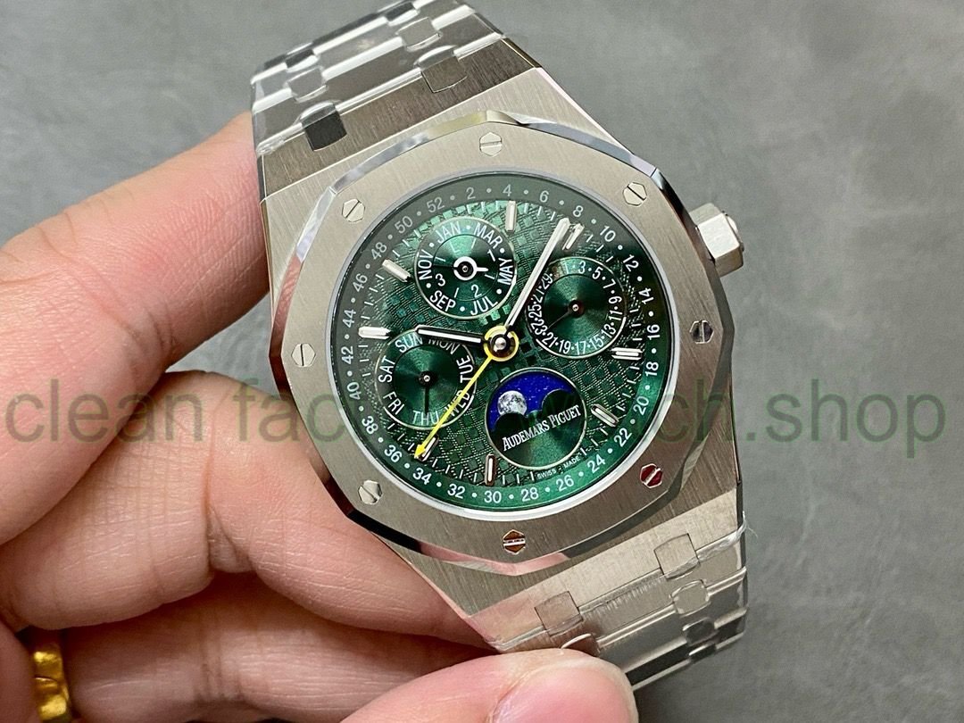 Noble watch Audemars Piguet Royal Oak series perpetual calendar watch, with its noble and elegant blue plate and cool stainless steel case, perfectly embodies Audemars Piguet’s aesthetic design and extremely high technology of complex functions.