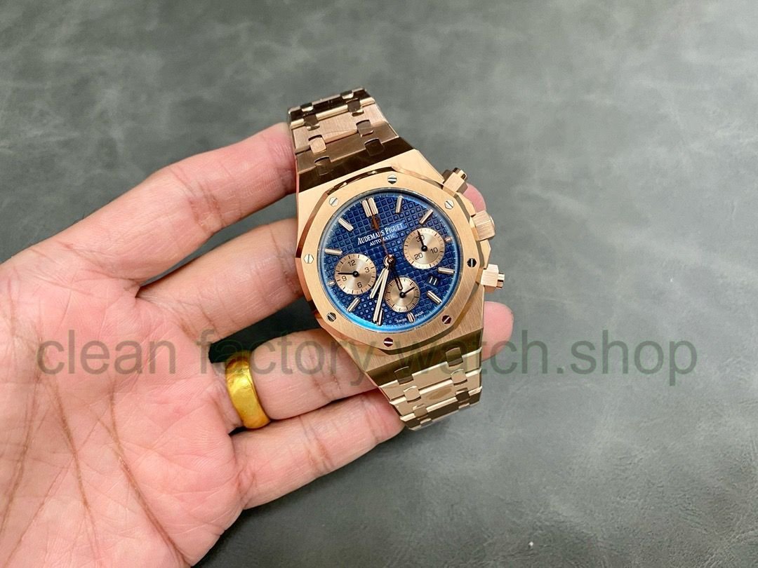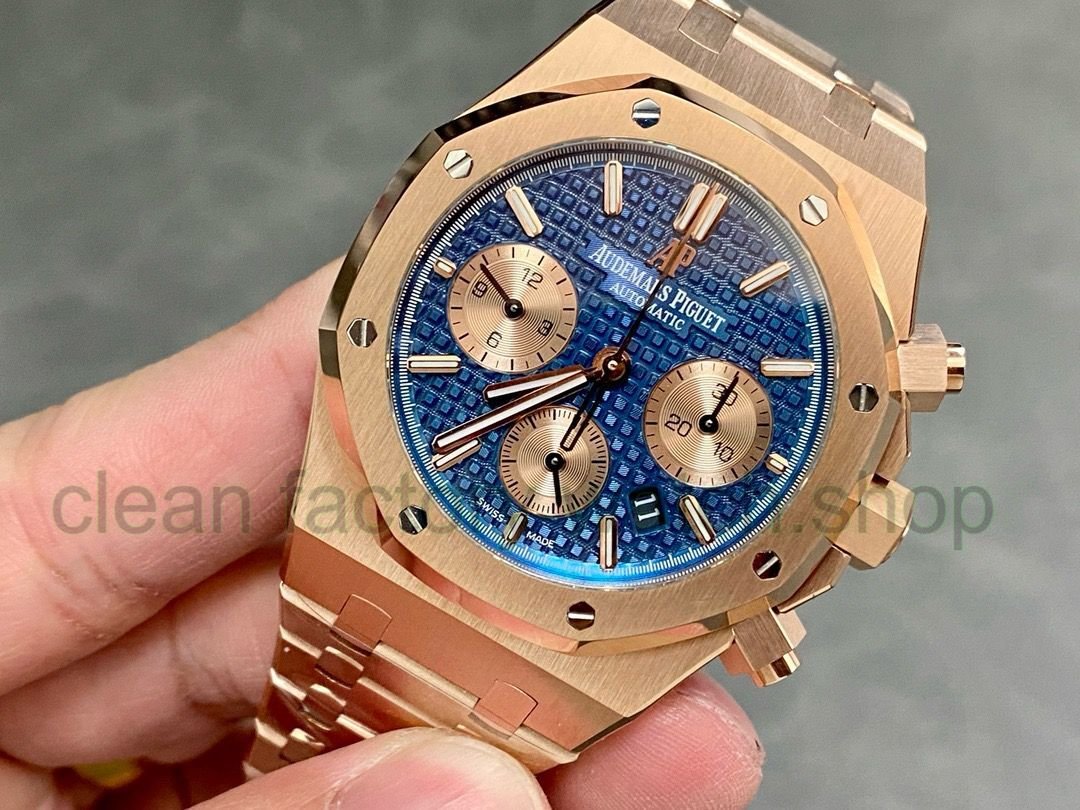 BF Factory Audemars Piguet Royal Oak Chronograph 26239OR.OO.1220OR.01 41mm Full Rose Gold Blue Dial