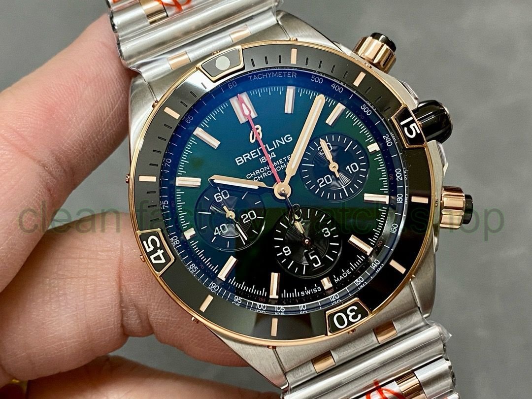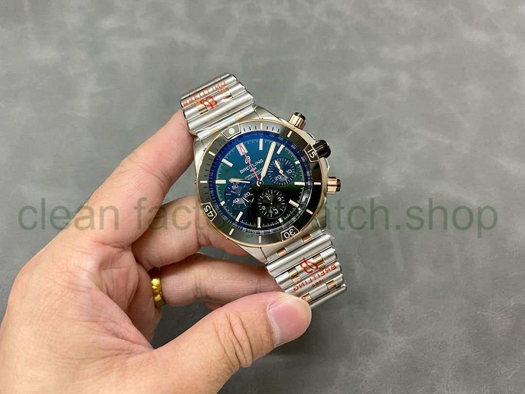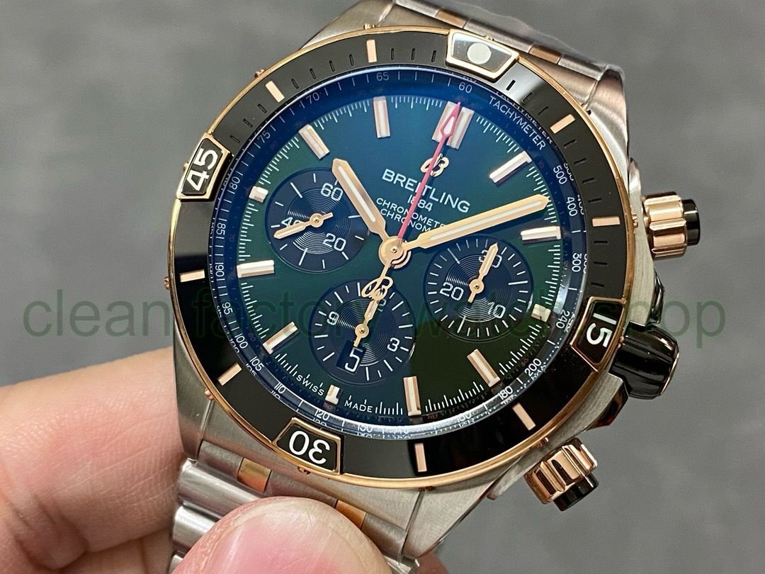BLS Factory Breitling Chronomat B01 44mm Rose Gold&Steel Ceramics Bezel Green Dial