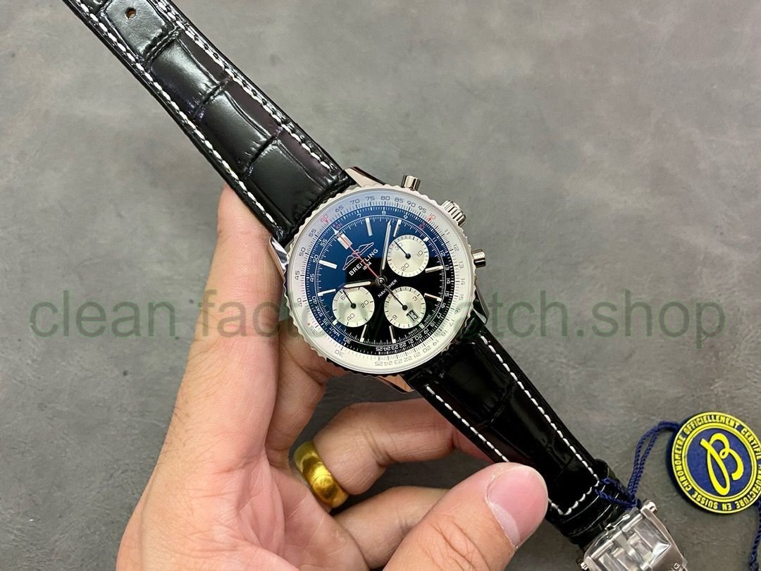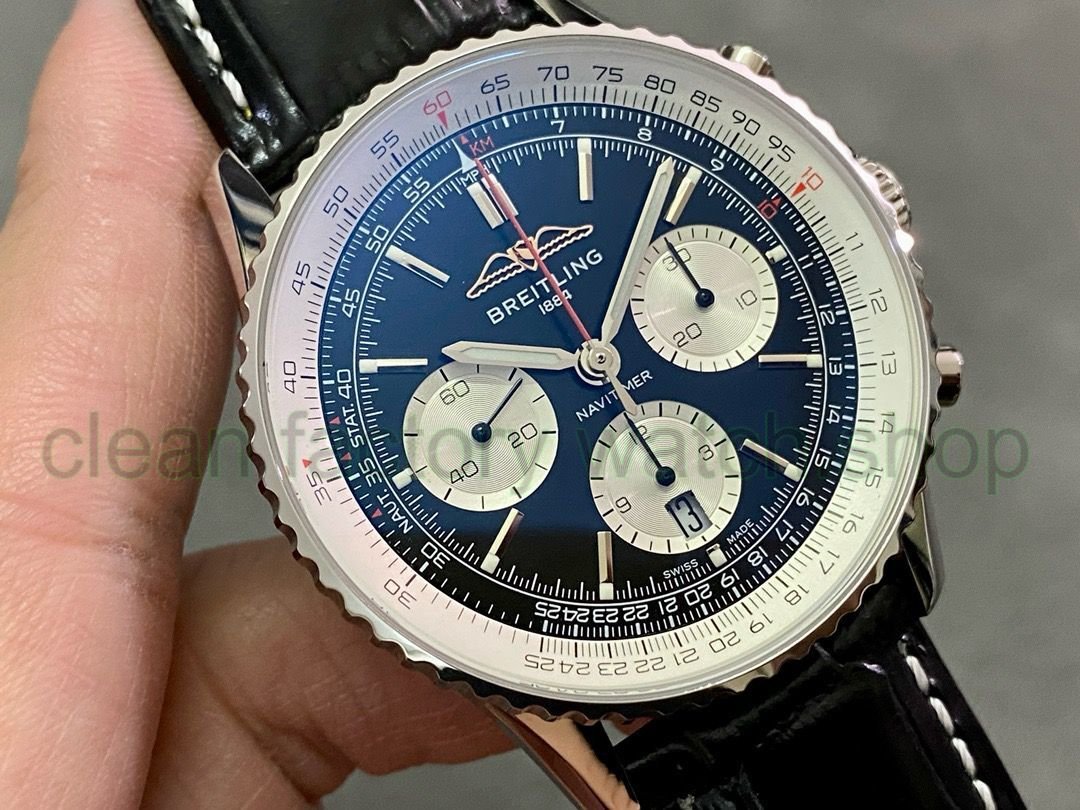BLS Factory Breitling Navitimer 1 B01 Chronograph AB0138211B1P1 43mm Steel Leather Strap Black Dial