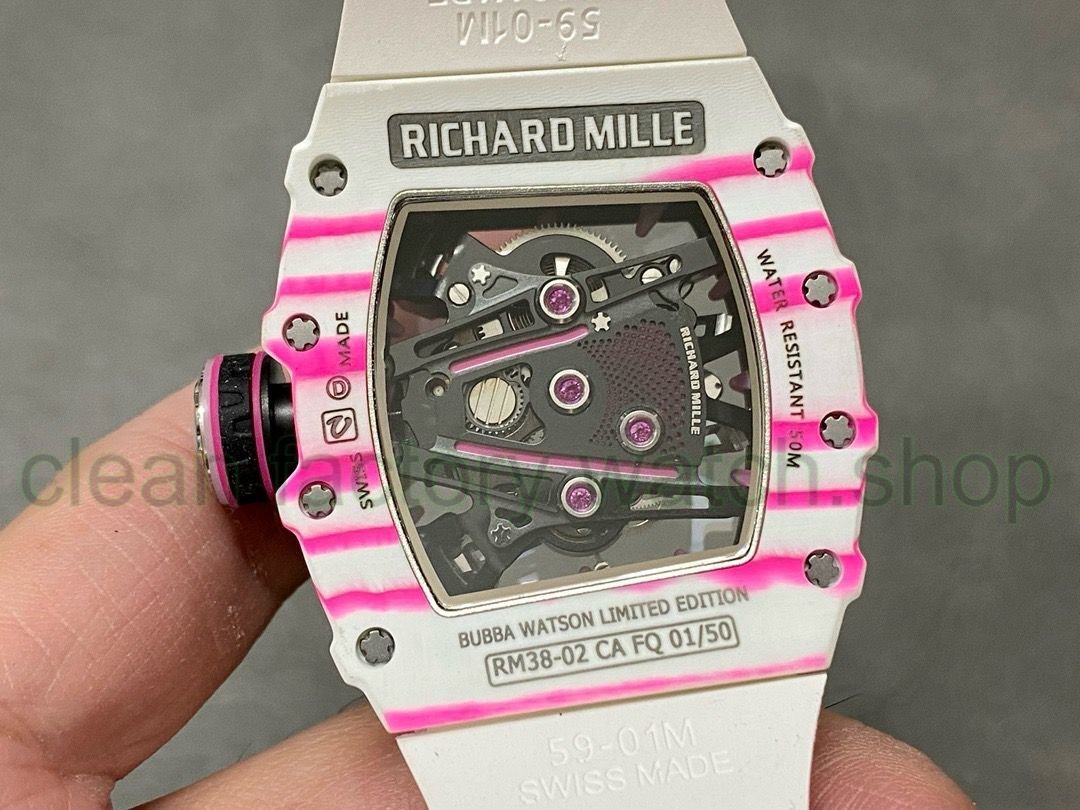 RM Factory “New Watch” RICHARD MILLE launches RM38-02 Tourbillon Bubba Watson pink theme hollow tourbillon watch: golf inspiration