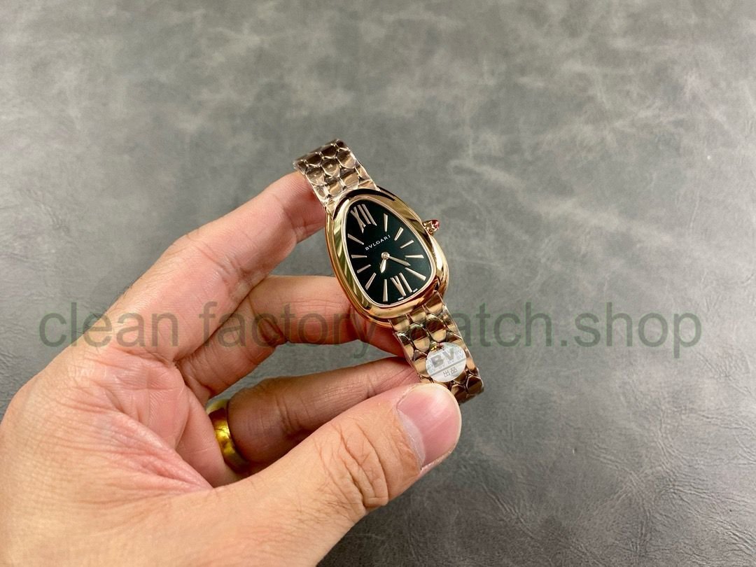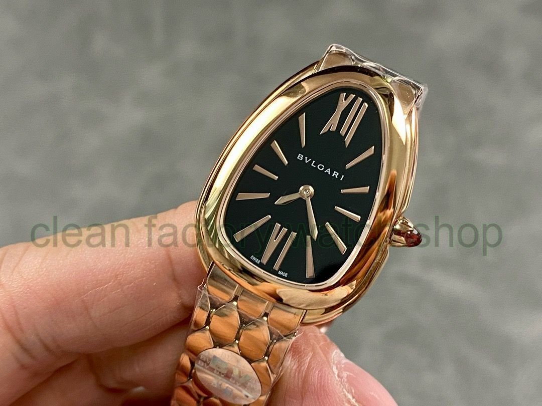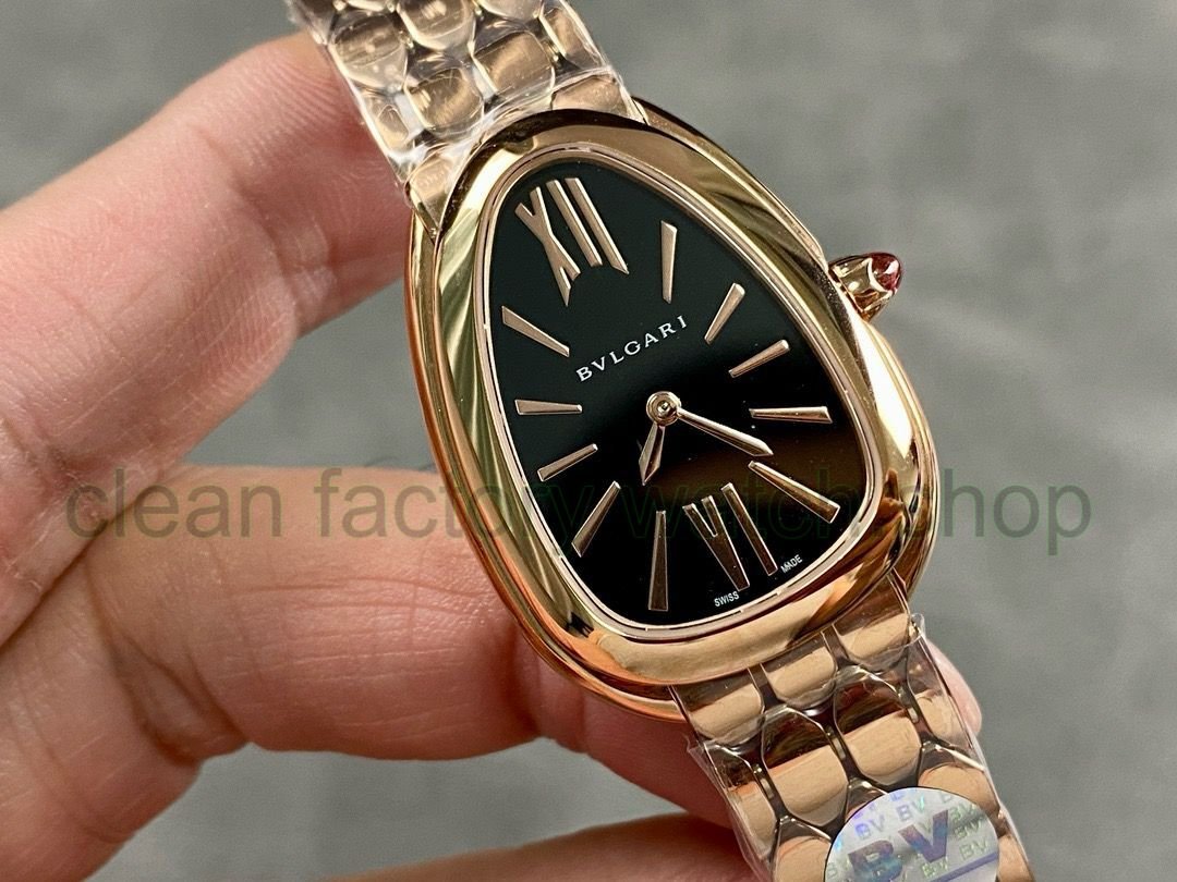BV Factory Bvlgari Quartz Serpenti 103948 33mm Full Steel,Rose Gold Roman Numerals Black (solid) Dial