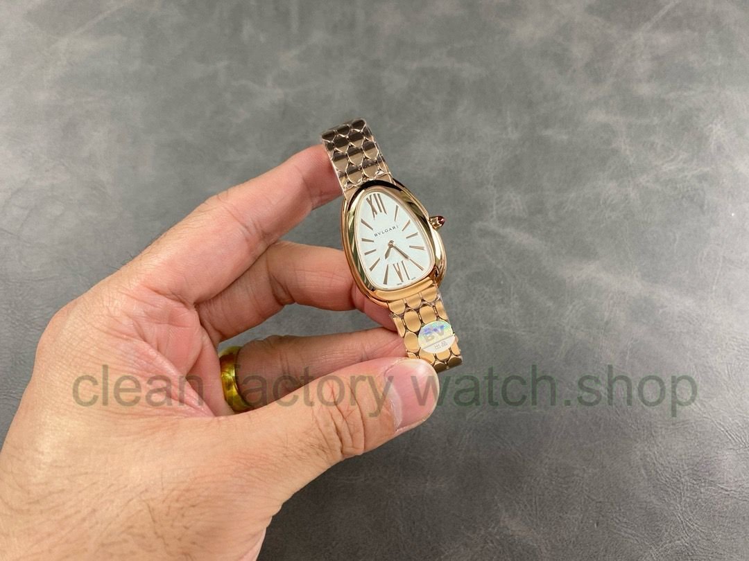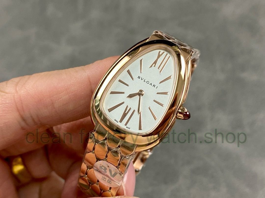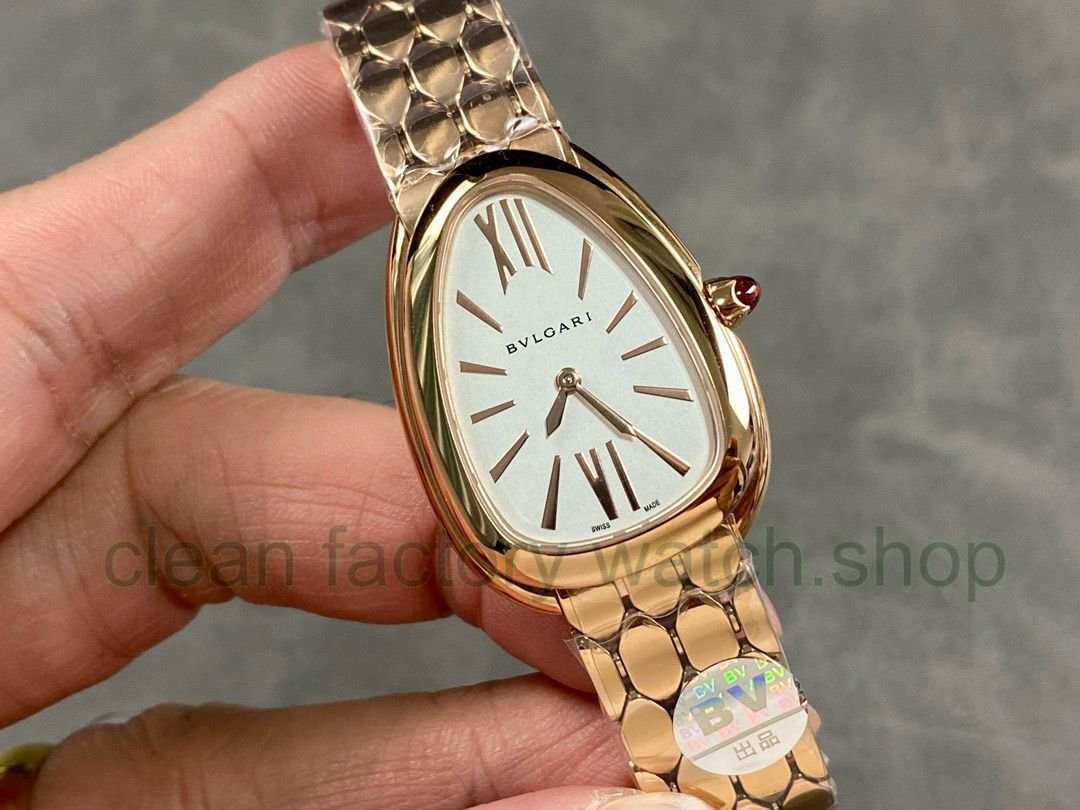 BV Factory Bvlgari Quartz Serpenti 103948 33mm Full Steel,Rose Gold Roman Numerals Silver (solid) Dial
