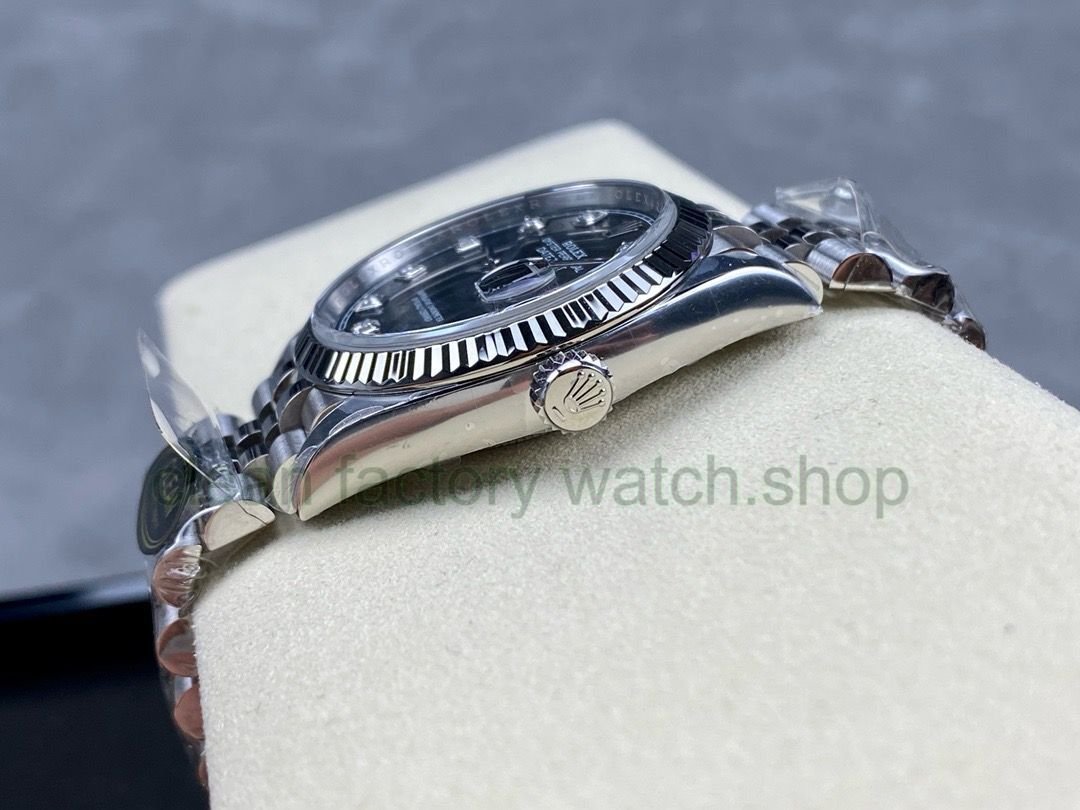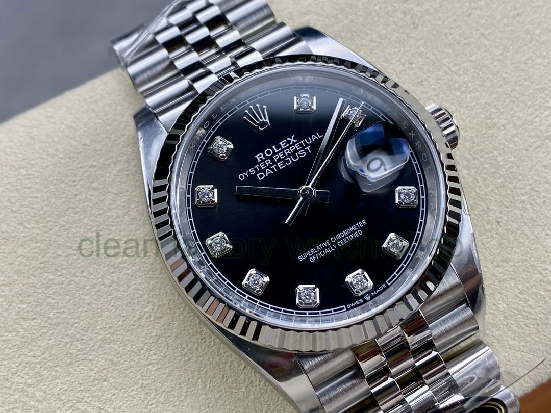 Clean Factory Rolex Datejust 126234-0027 36MM Full 904L Diamond Mop Black Dial Jubilee