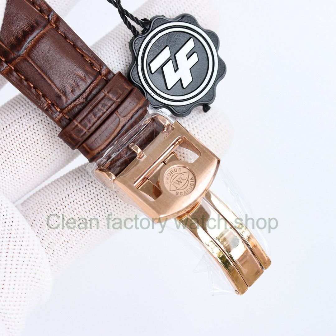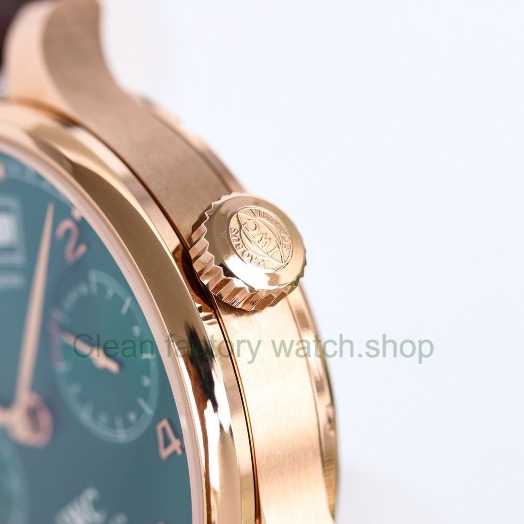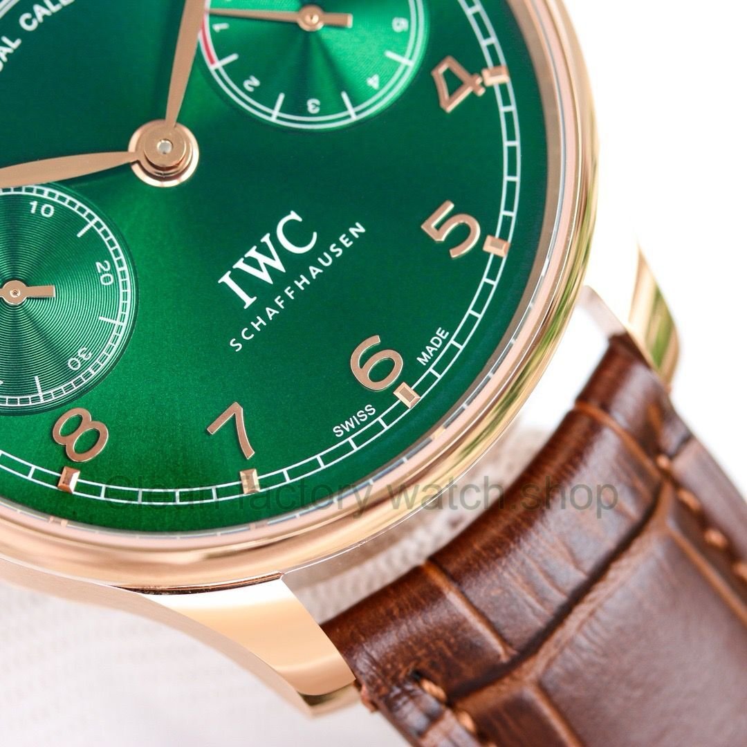 Copy ZF Factory IWC Portuguese Annual Calendar IW503510 44mm Rose Gold Leather Strap Arabic Numerals Green Dial